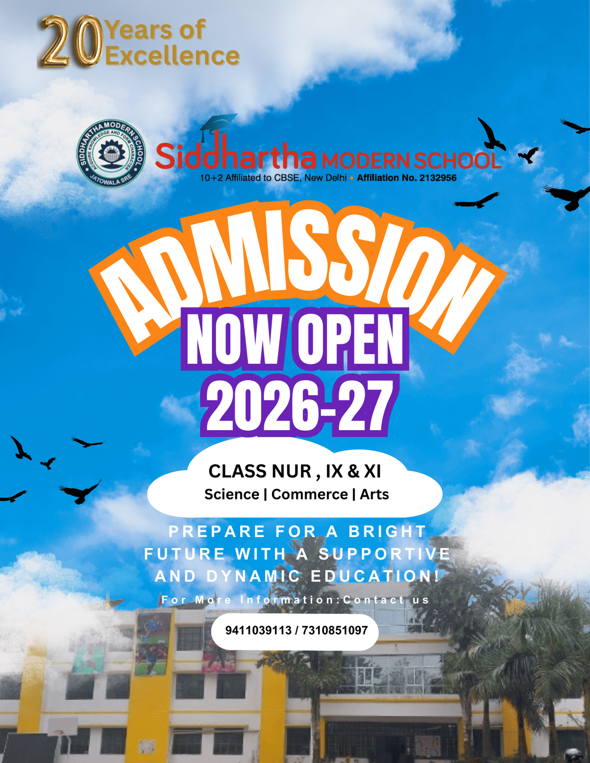 Siddhartha Modern School is co-educational English medium school affiliated to CBSE New Delhi under aegis of DEV Education Society that promotes the whole development of whole person blending academic, athletics and creative achievement with opportunities of leadership and equipping students to become contributing productive members of our society.